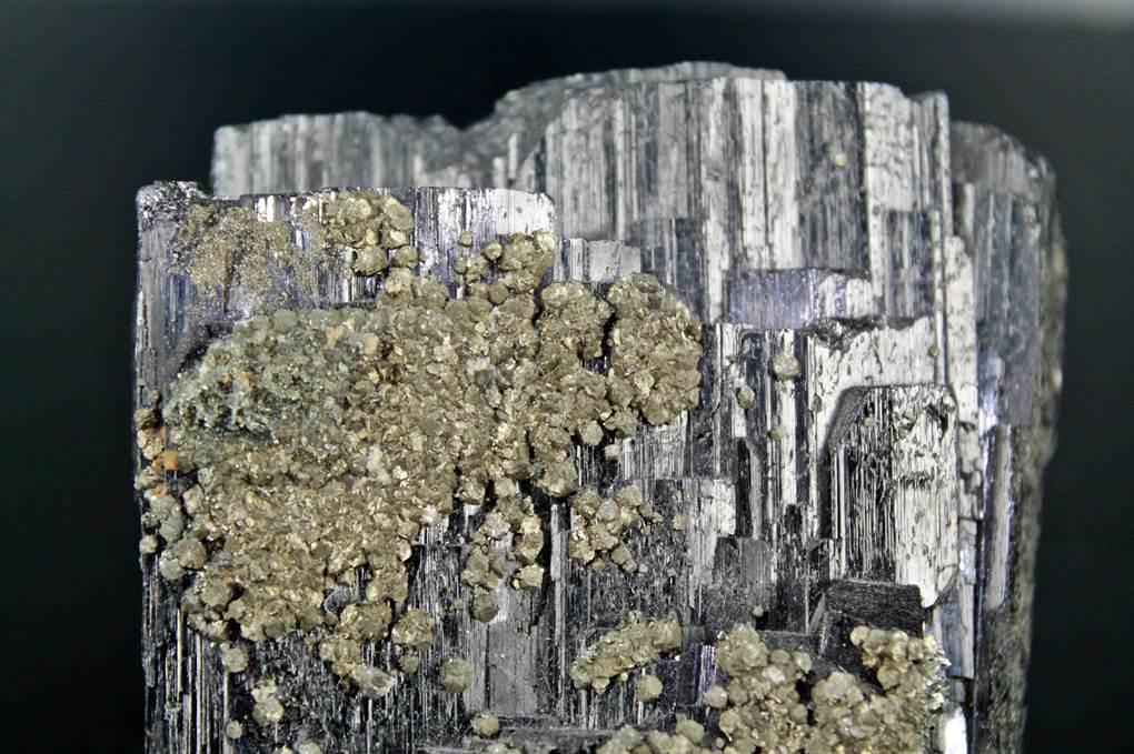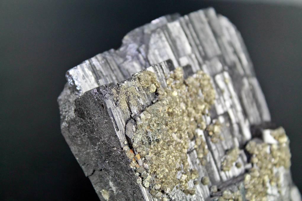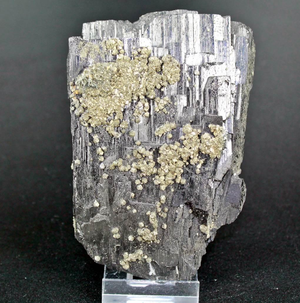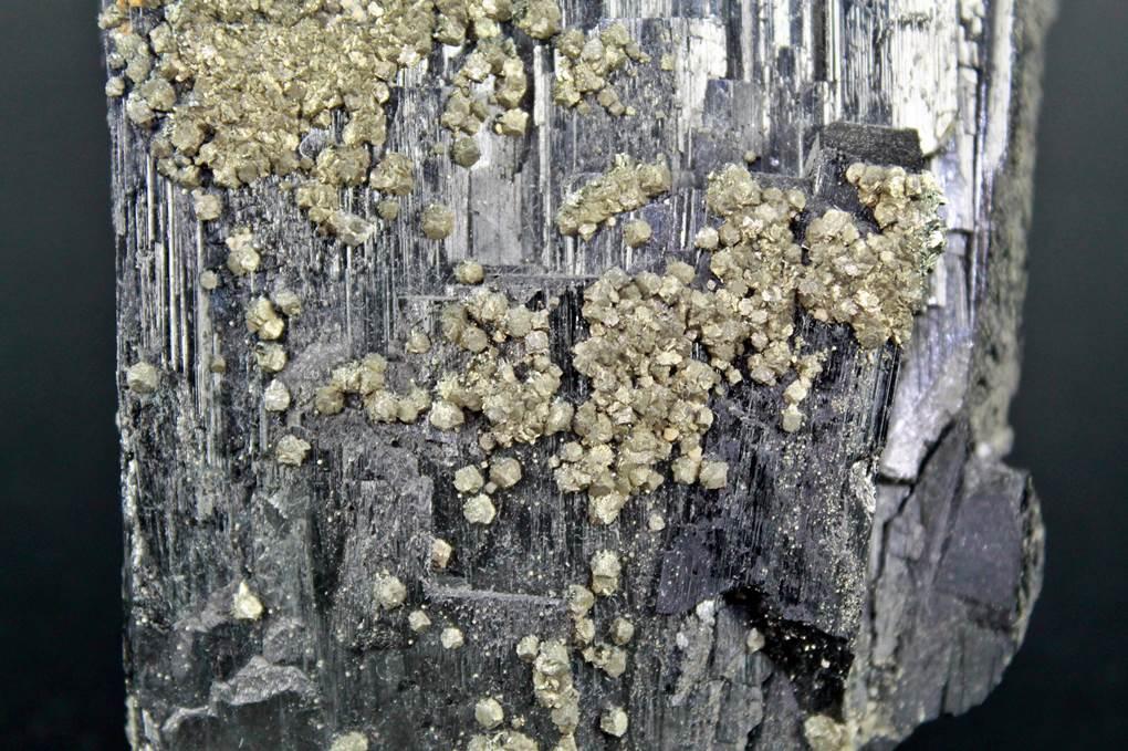 Cristal de Ferberita de gran calidad y brillo, y de gran tamaño. sobre ella se prensetan cristales de pirita.